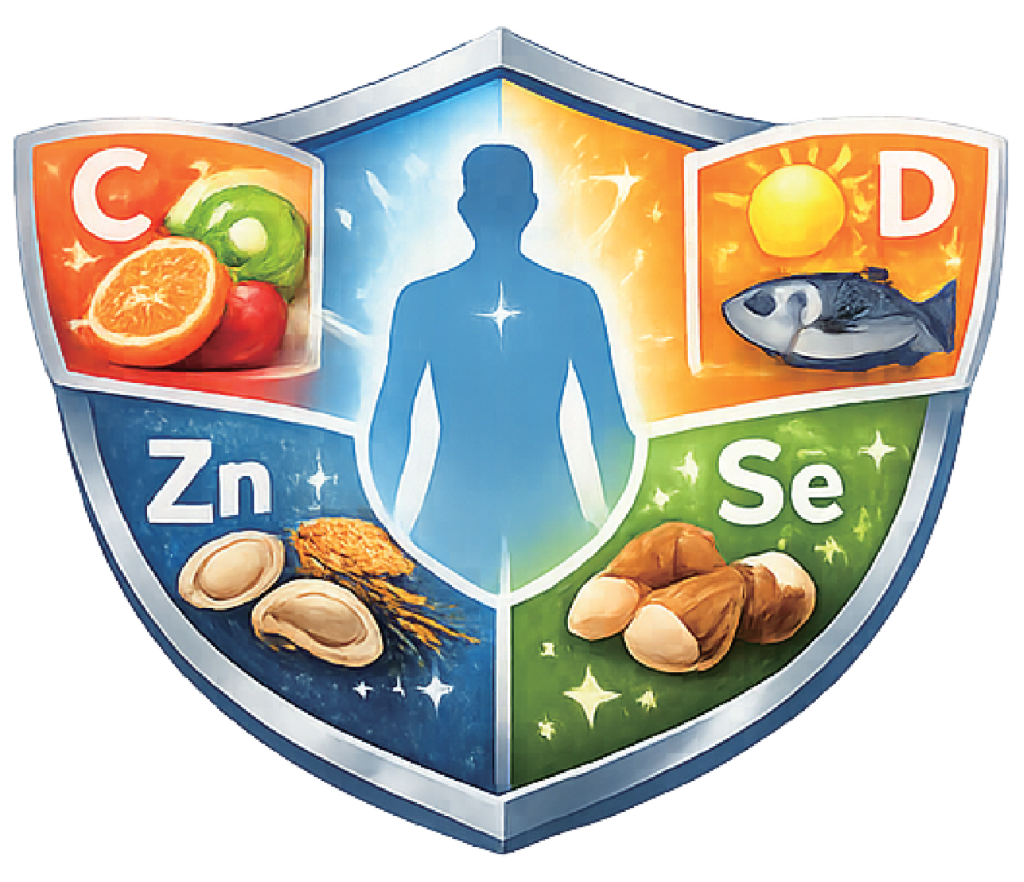 The immune system relies on multiple nutrients working together to function effectively. From a nutritional perspective, the following four nutrients play particularly important roles in supporting immune health: